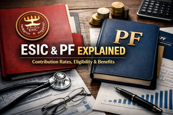 ESIC and PF: Employees’ State Insurance Corporation (ESIC) and Provident Fund (PF) are two major statutory social security schemes in India that provide financial protection to employees. ESIC contributions are made at 0.75% by the employee and 3.25% by the employer of wages w.e.f. The latest applicable period, offering benefits such as medical care and disability support under the ESI Act; the official ESIC portal is accessible at https://esic.gov.in. PF contributions under the Employees’ Provident Fund Organisation (EPFO) require 12% of basic salary and dearness allowance from both employer and employee, building retirement savings with pension and insurance components. This article explains current contribution rates, eligibility thresholds, benefits, and compliance requirements for both schemes.